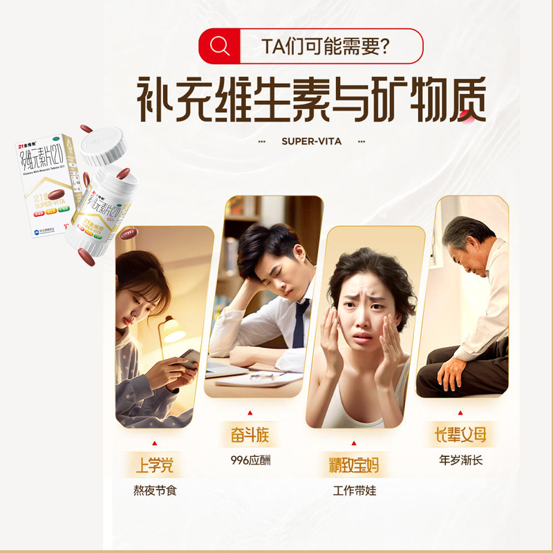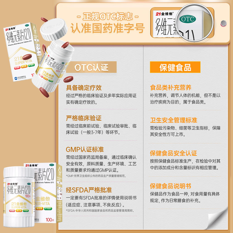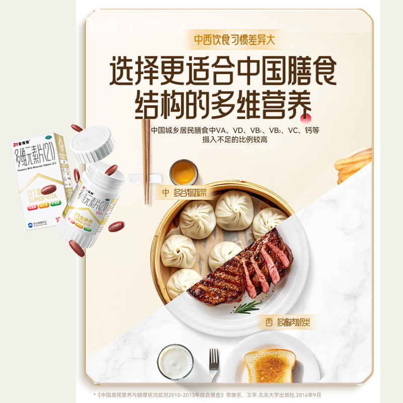 【21金维他】多维元素片(21)60片*1瓶/盒缺乏维生素生发口腔溃疡男女士儿童小孩补充