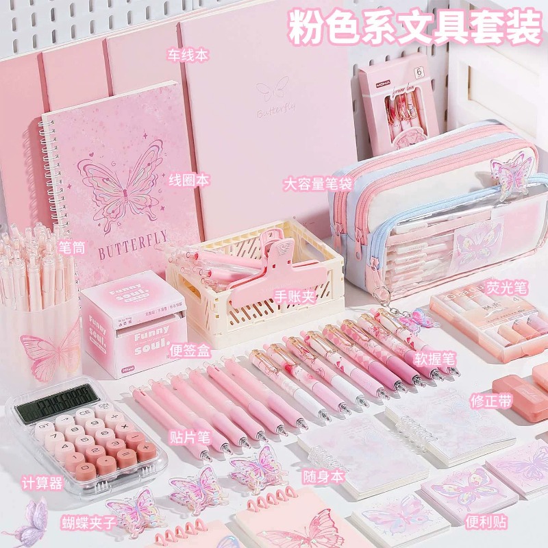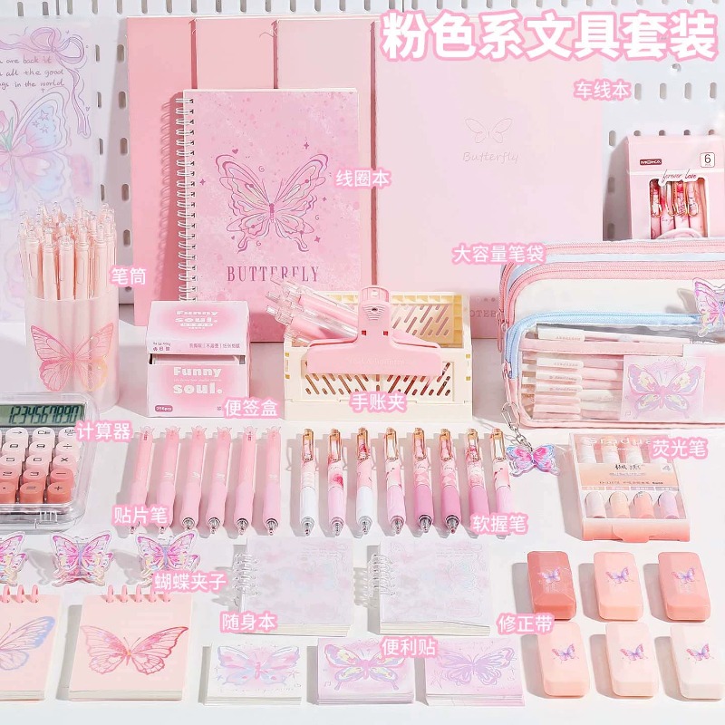 粉色蝴蝶笔袋2025新款高颜值ins风文具套装礼盒小学生三年级开学大礼包女生高中多巴胺笔袋初中生学习用品