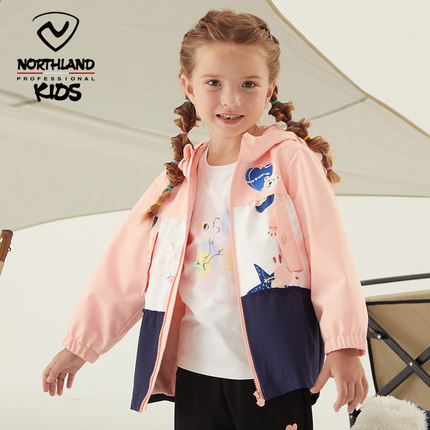 诺诗兰儿童小女童单层冲锋衣秋季新品时尚拼接超级防泼水夹克