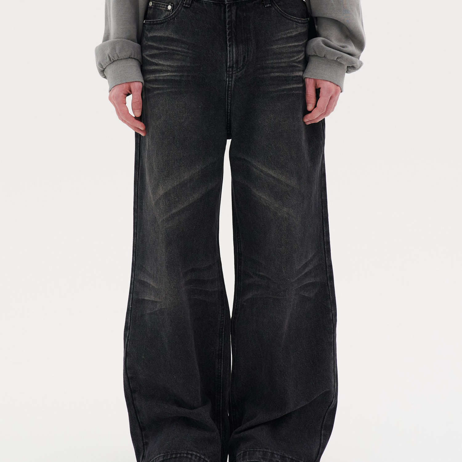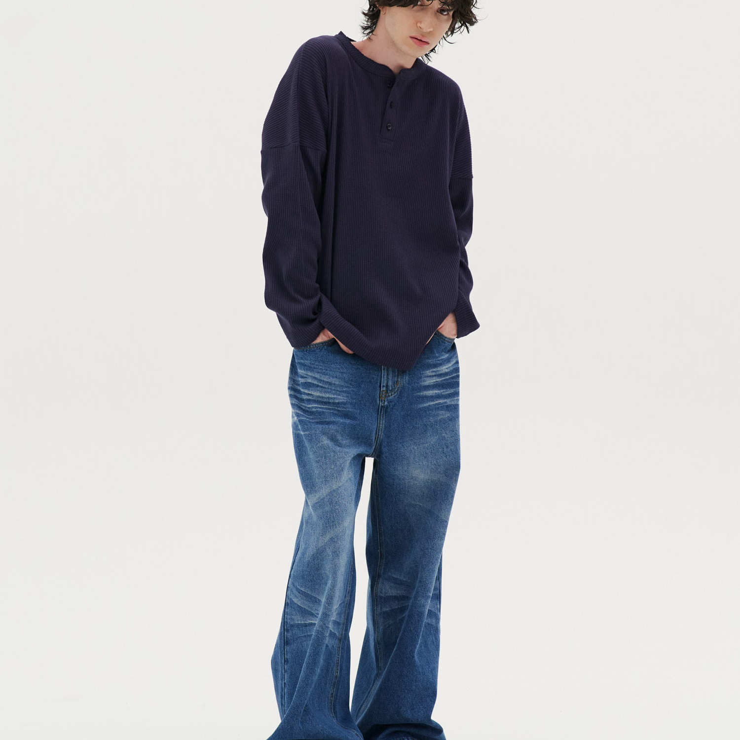 北运复古风宽松阔腿牛仔裤男高腰长裤深蓝色直筒裤