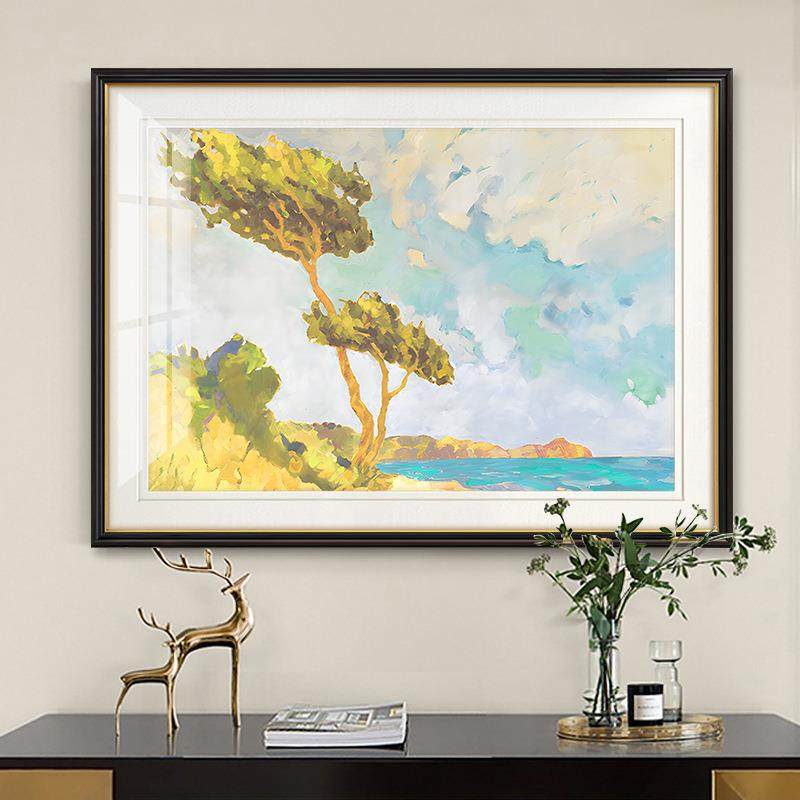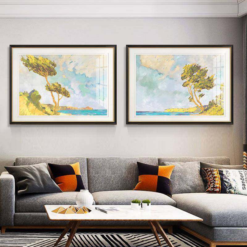 现代美式客厅沙发背景挂画法式轻奢卧室床头装饰画简欧海边挂画
