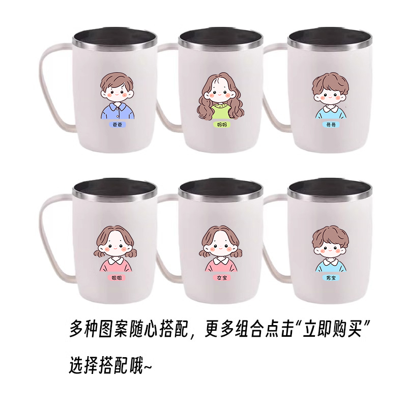2025新款304不锈钢洗漱口杯儿童刷牙杯子ins风套装一家三四口牙杯