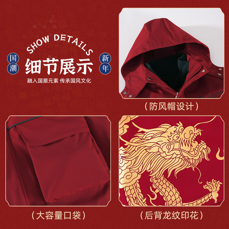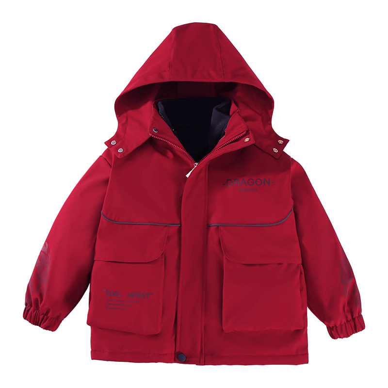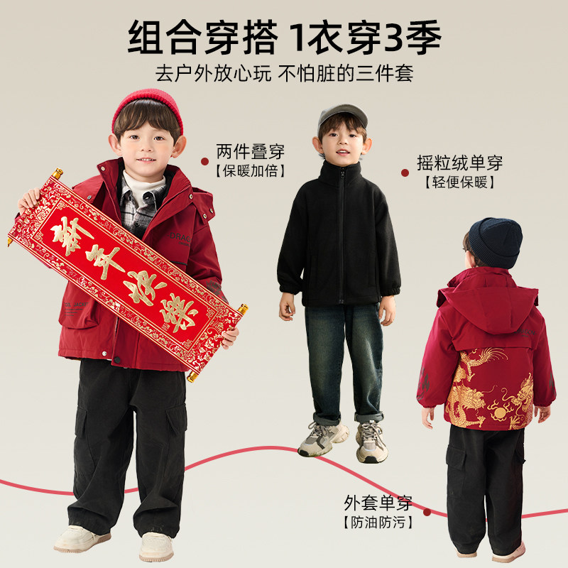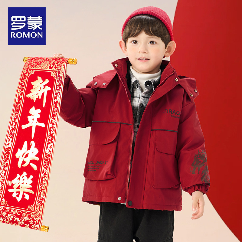 罗蒙儿童冲锋外套棉服2025新款喜庆过年红色拜年服男童三合一夹克