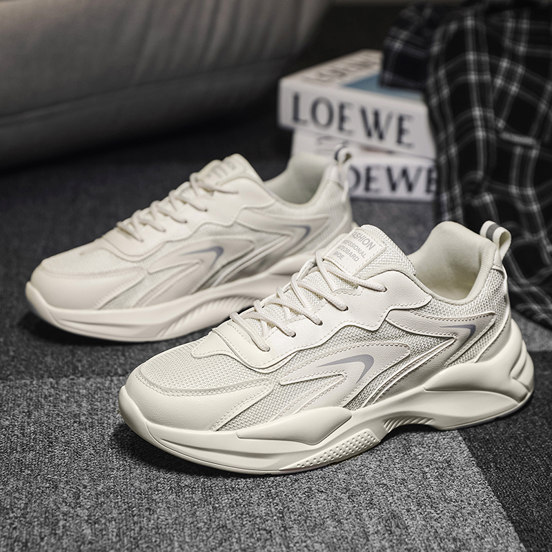 男鞋春季透气运动潮鞋小白网面增高老爹白鞋跑步百搭潮鞋2025新款