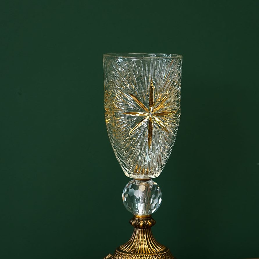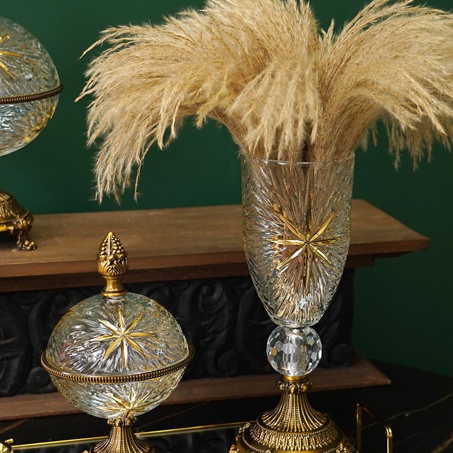 欧式花瓶高脚装饰花器家居餐厅玻璃客厅艺术金属费灵雕花奢华桌面