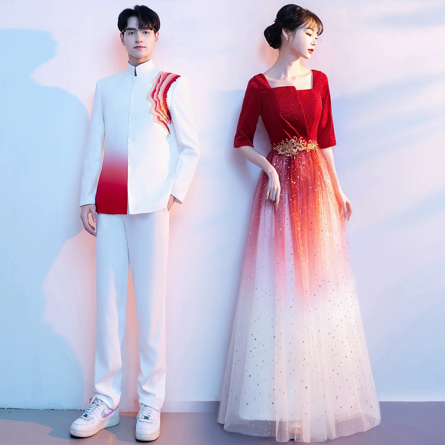 2025新款男士中山装演出服主持人舞台套装学生大合唱团表演礼服女