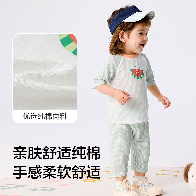 巴拉巴拉宝宝睡衣新生儿家居套装男童夏装薄款女2025新款可爱舒适