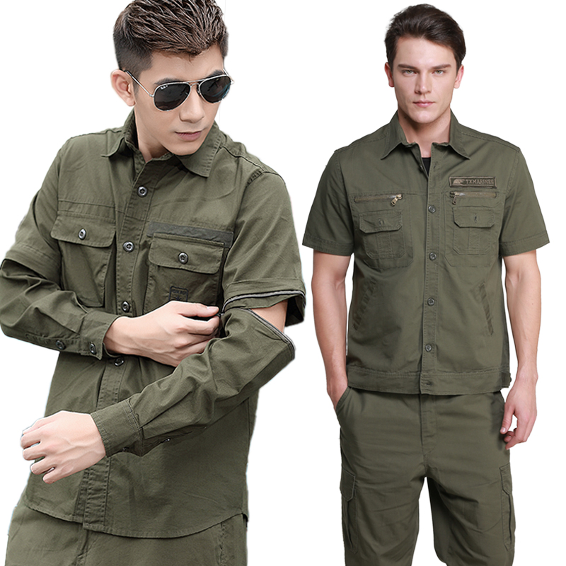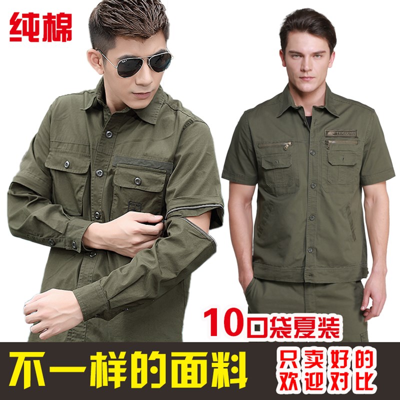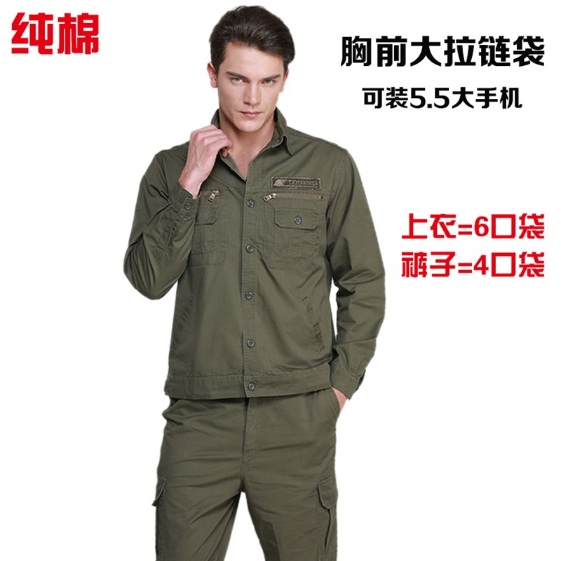 工作服夏季长袖短袖套装男纯棉劳保电焊服工厂车间汽修工衣大口袋