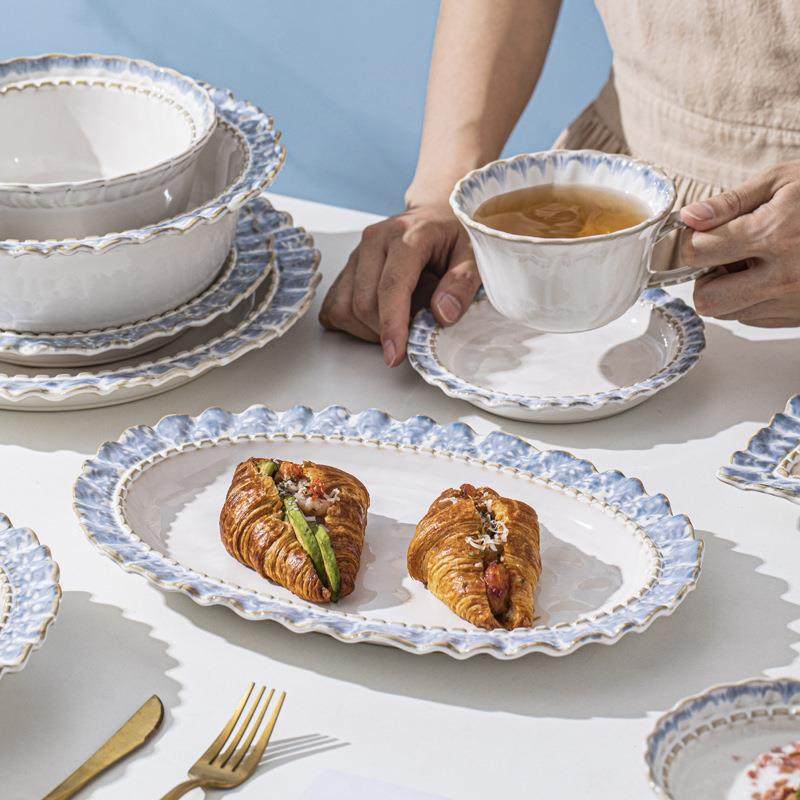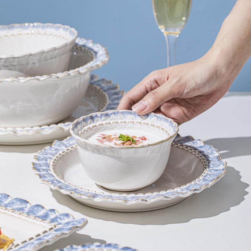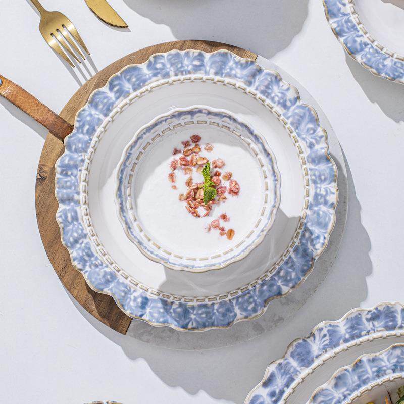 烟蓝餐具创意系列碗碟套装窑变简约家用陶瓷釉下彩饭碗厂家