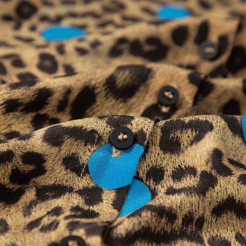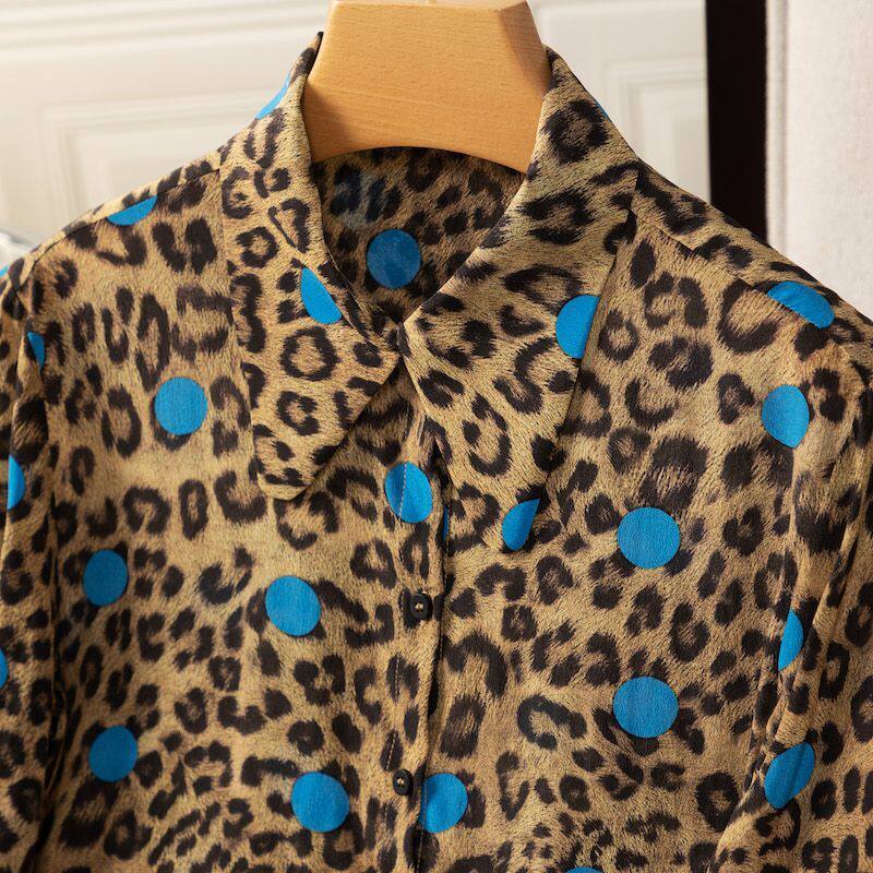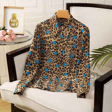 2026新款真丝桑蚕丝复古盘扣立领长袖衬衫女宽松显瘦百搭上衣豹纹
