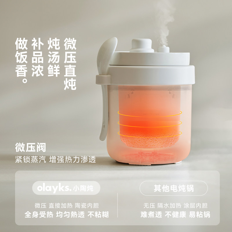 olayks立时小陶炖微压电炖盅0.6L家用迷你小型电炖锅煮粥电饭锅煲