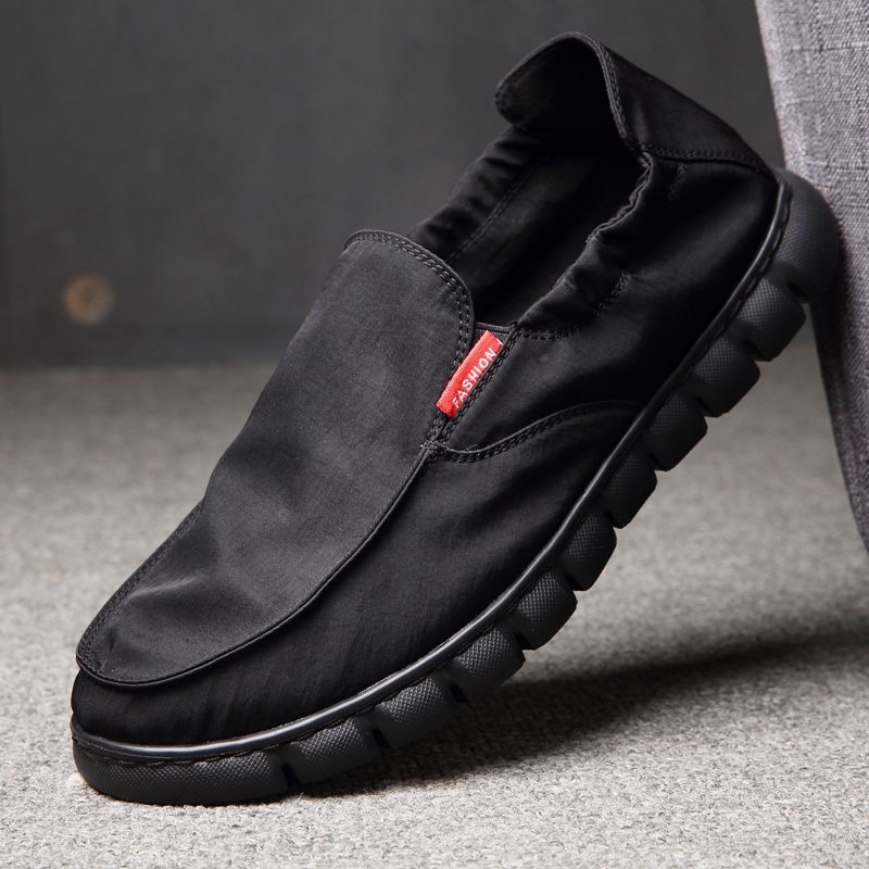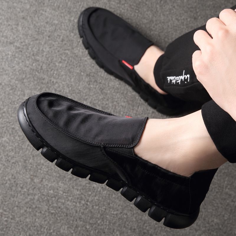 夏季男鞋一脚蹬透气帆布鞋男士薄款软底休闲鞋低帮乐福鞋套脚板鞋