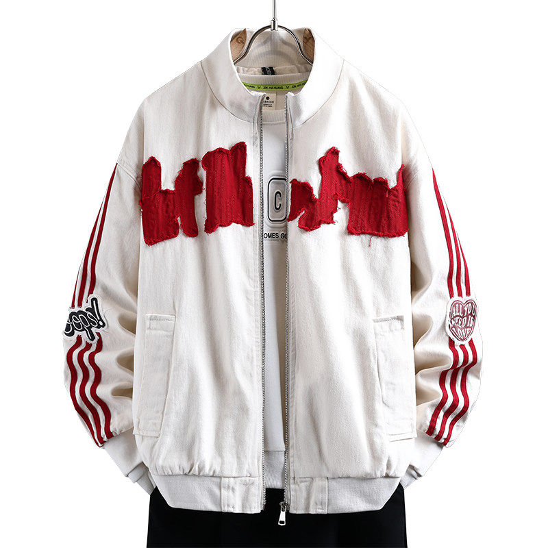 春秋季新款重磅刺绣牛仔外套男生青少年美式棒球服学生夹克男上衣