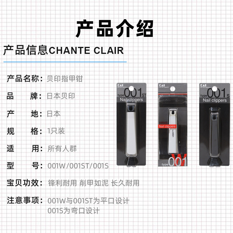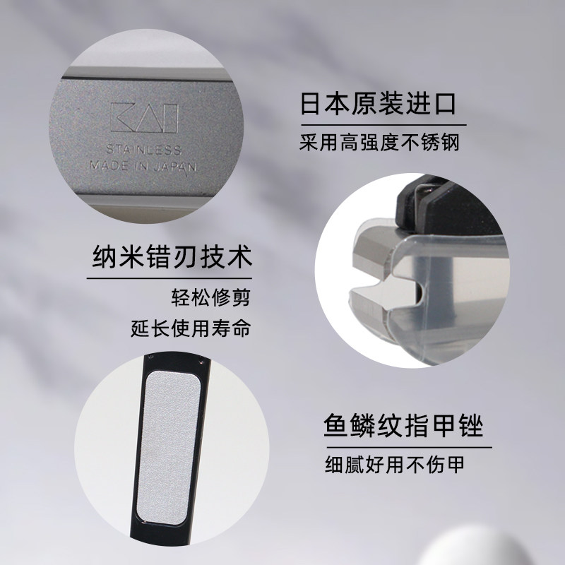 日本KAI贝印指甲刀不锈钢防飞溅指甲钳平口指甲剪手指修甲刀单个