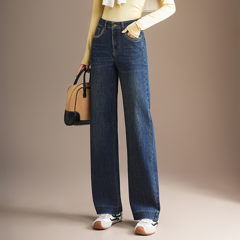 哥家商场同款2026春秋夏高腰微弹休闲不易变形口袋直筒阔腿裤女士