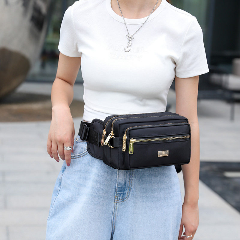 腰包女男通用大容量多层实用耐磨防水牛津布生意收银钱斜跨小背包