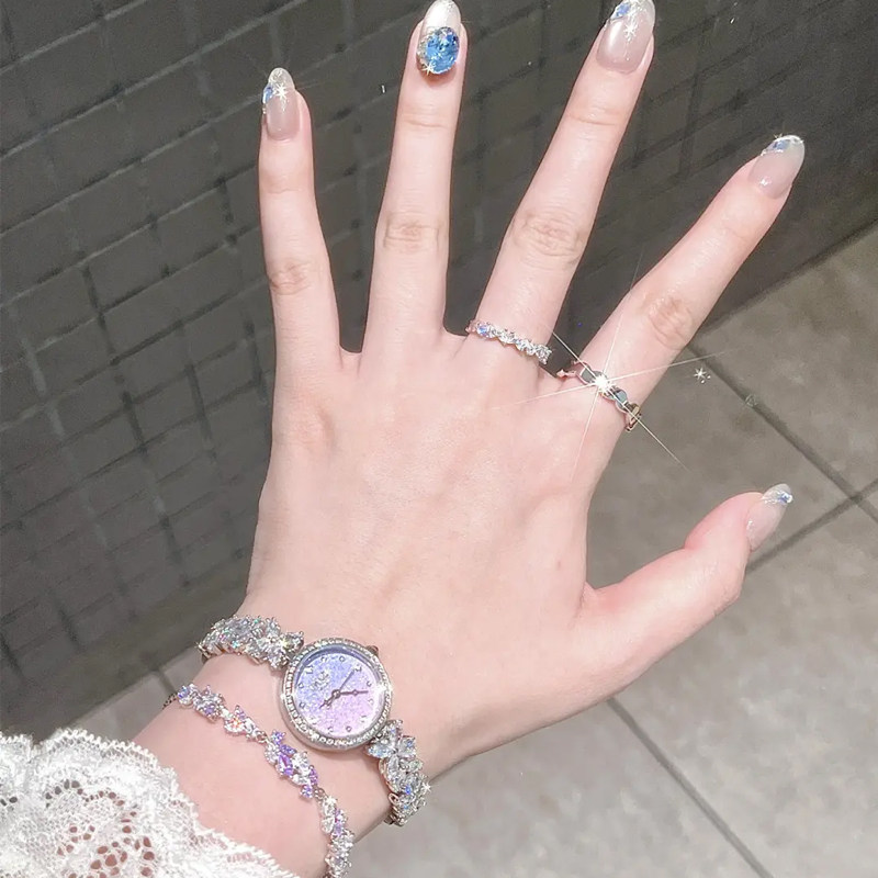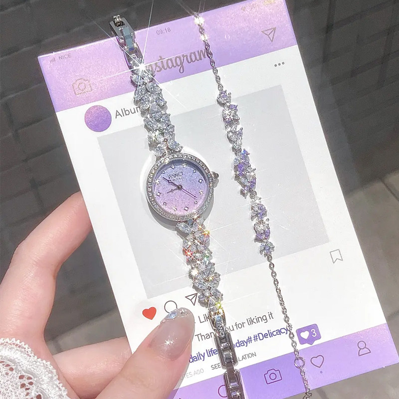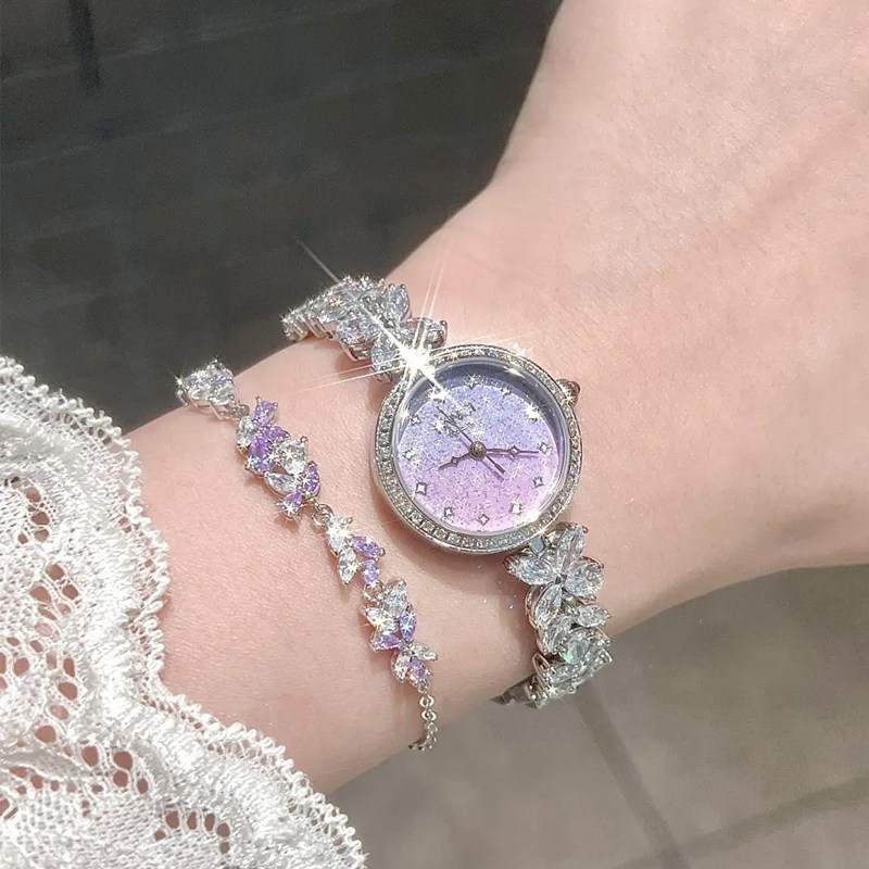 Disney迪士尼手表女轻奢镶钻手链腕表满钻紫色表盘高级感生日礼物