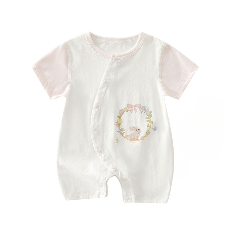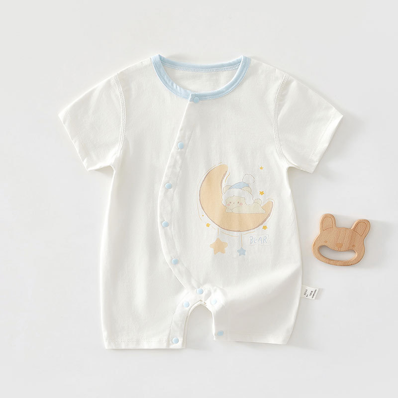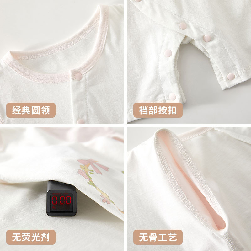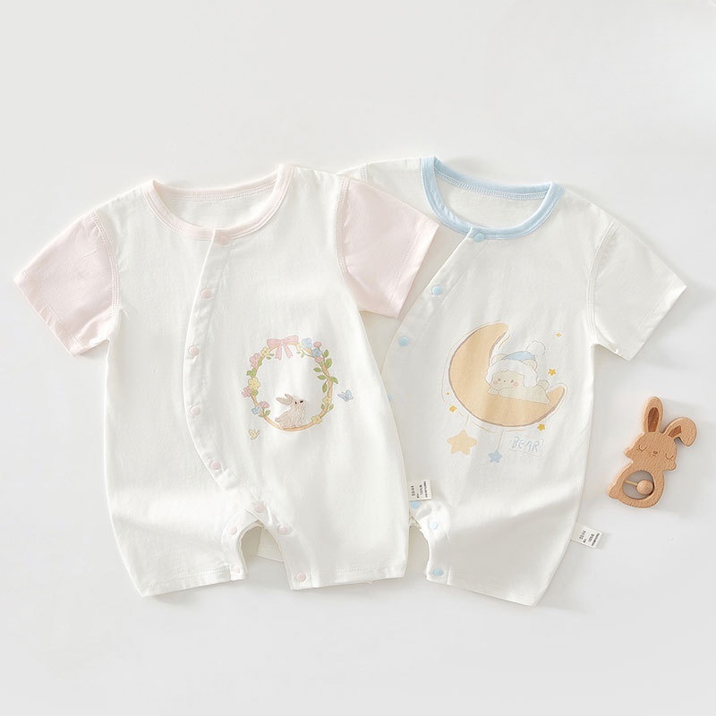 婴儿夏季衣服纯棉新生儿哈衣夏装薄款睡衣套装满月宝宝连体衣短袖