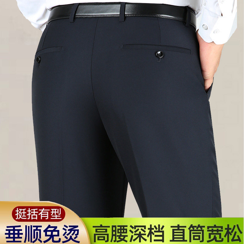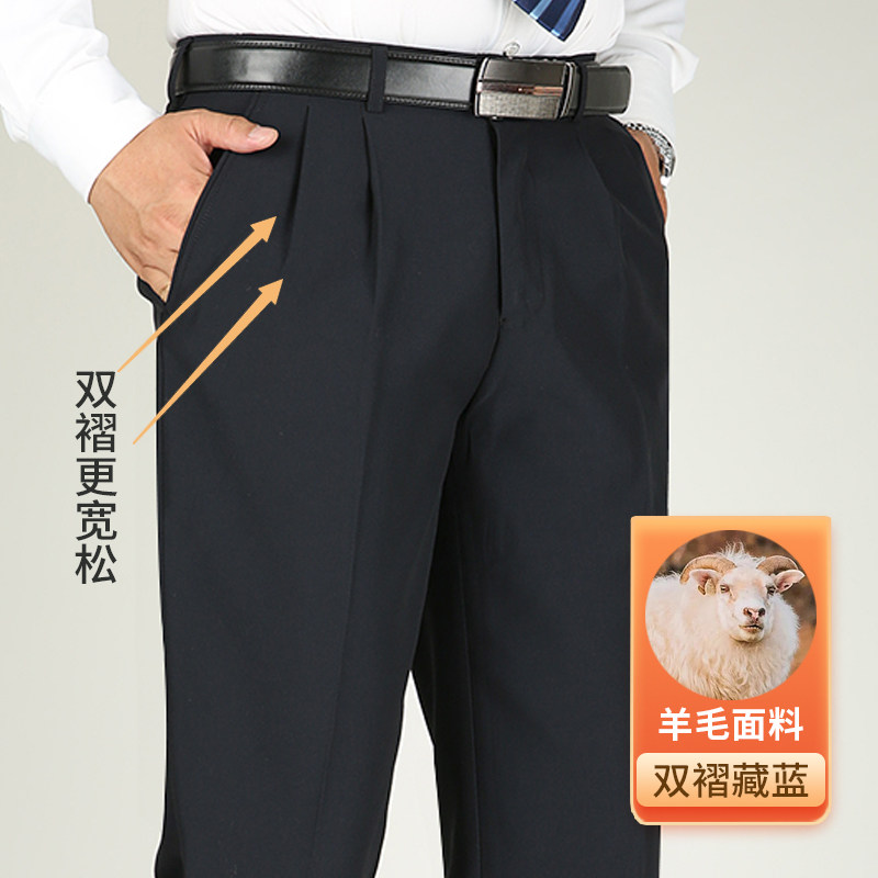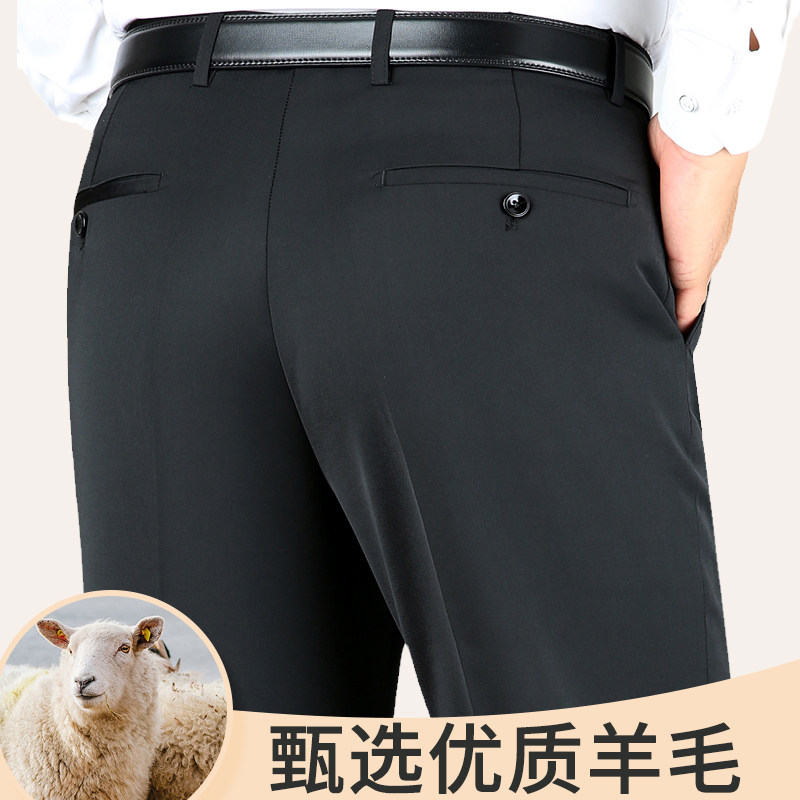 虎都羊毛西裤男冬季厚款中年直筒高腰深裆商务免烫西装休闲男士裤