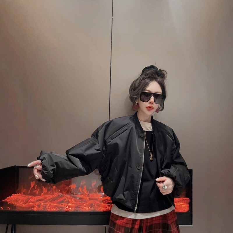 欧货飞行夹克二棉衣女时尚减龄小个子棒球服2026春新品加棉短外套