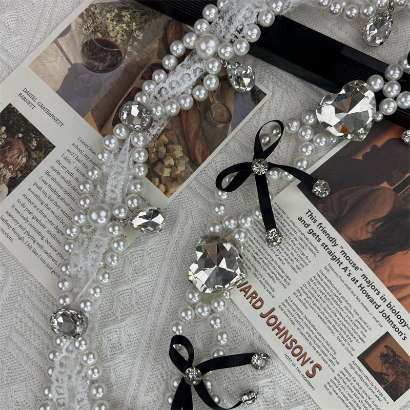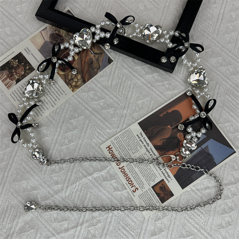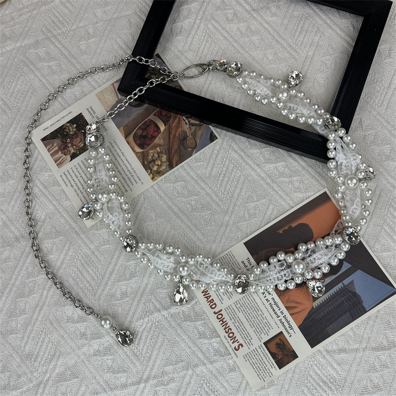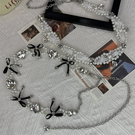 法式珍珠蕾丝腰带女装饰配裙子毛衣时尚y2k水钻腰链配饰2025新款