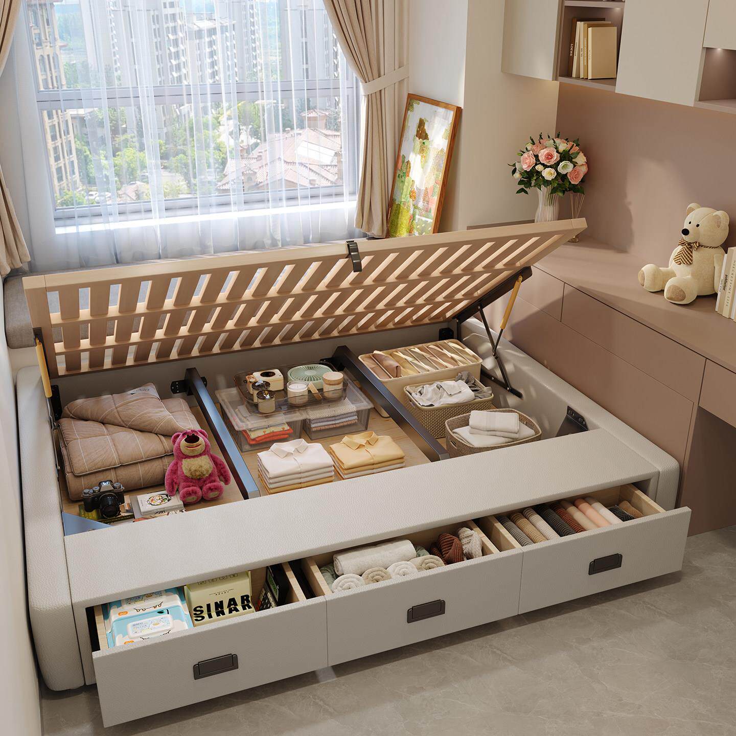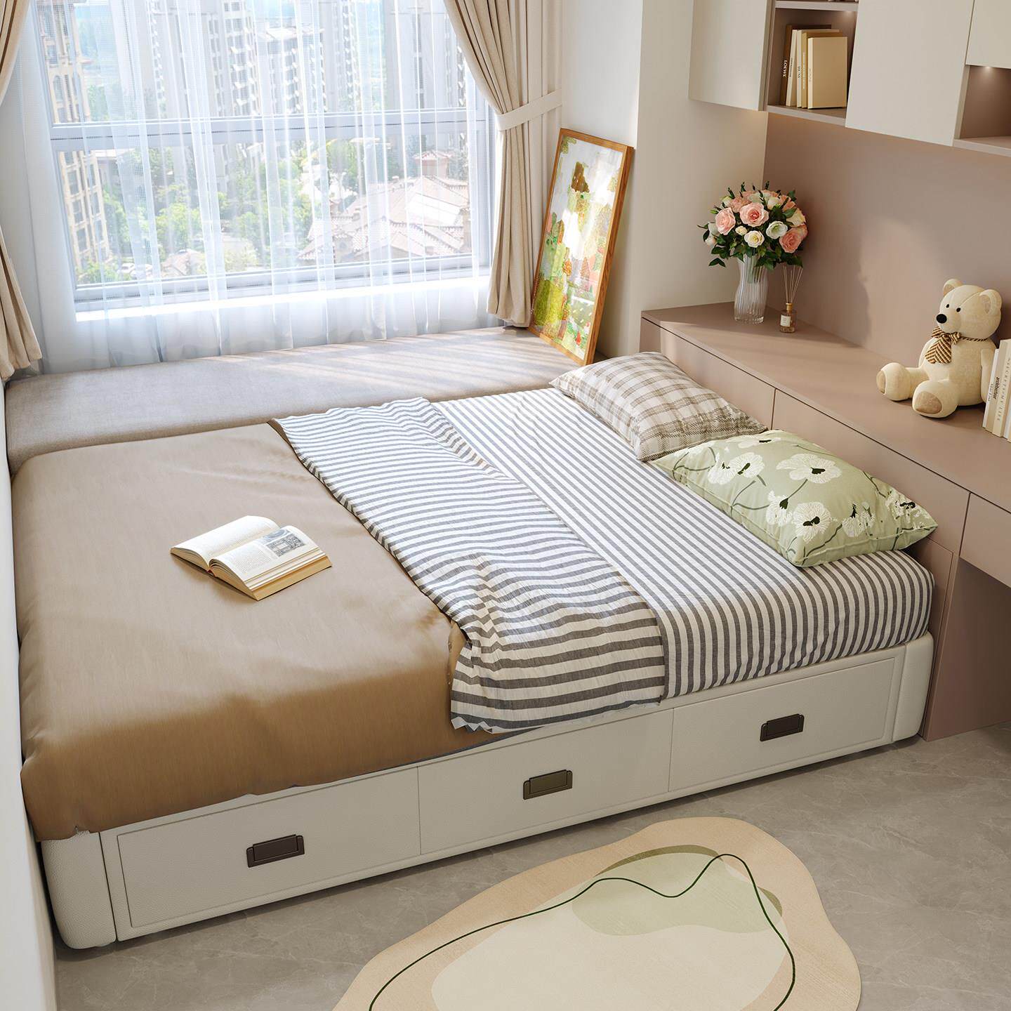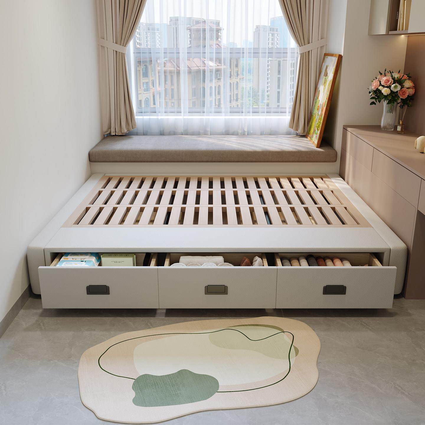 榻榻米落地床全榉木排骨架无床头无床头实木床带抽屉收纳床悬浮床