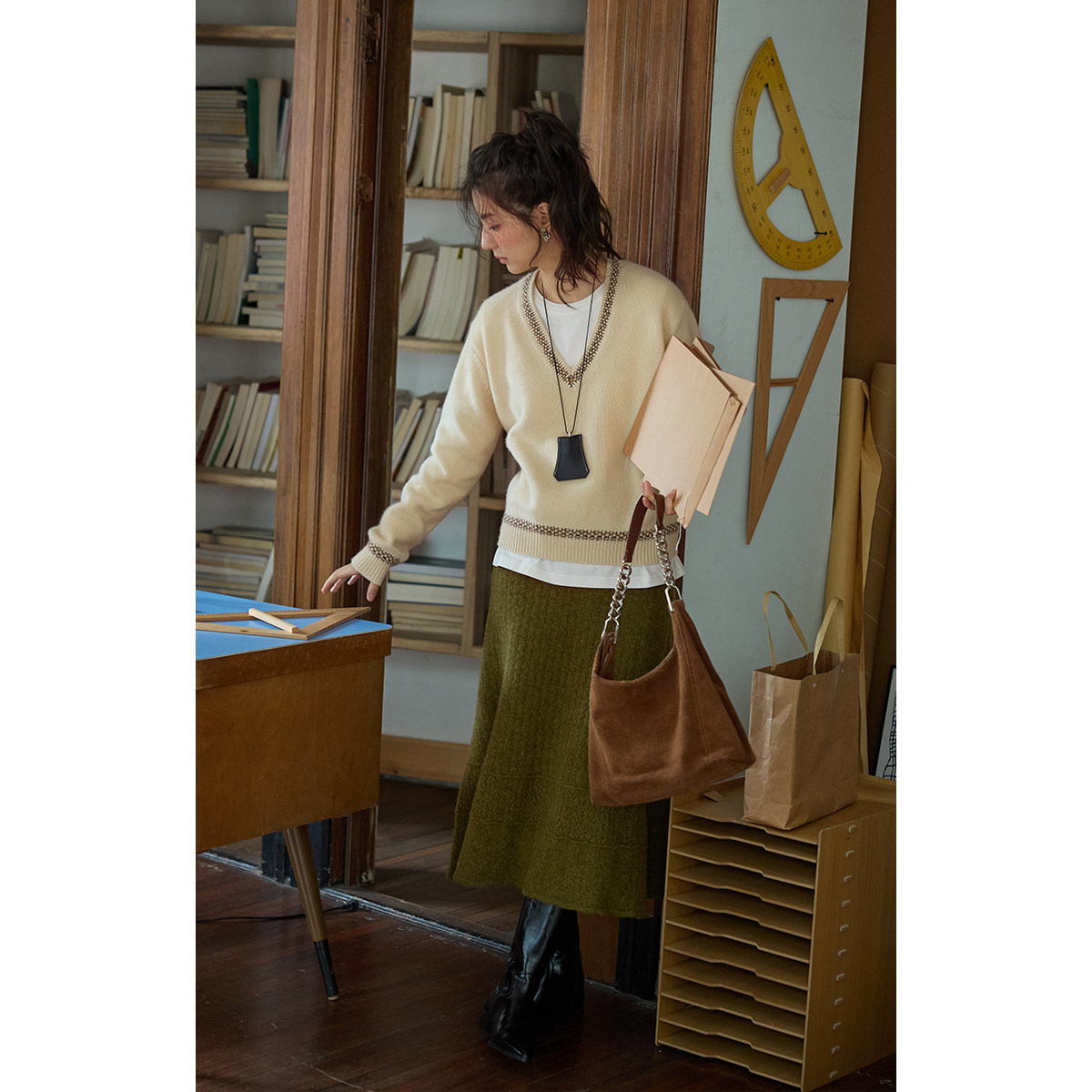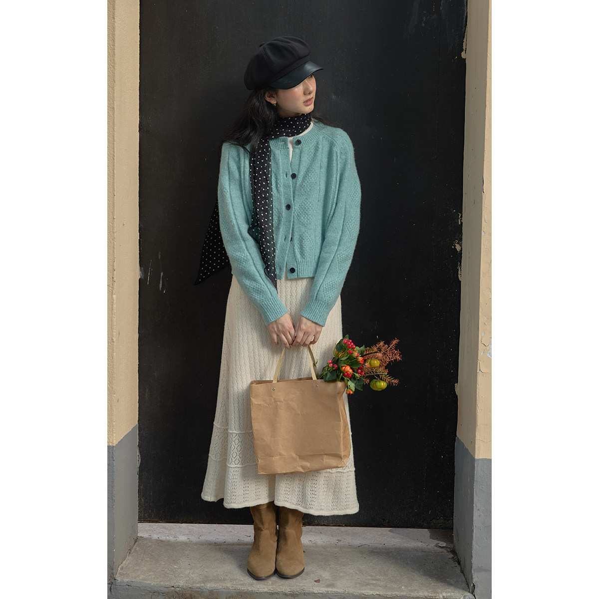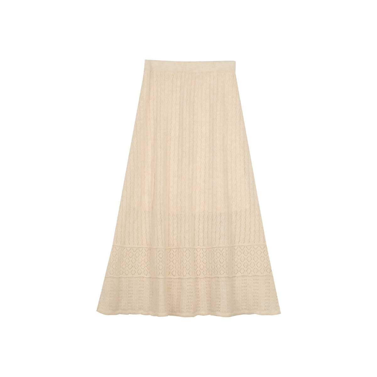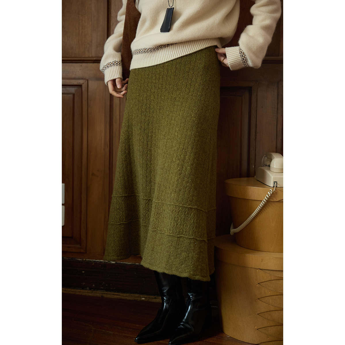 solighter法式全羊毛钩花针织半身裙女秋冬2025新款显瘦a字裙伞裙