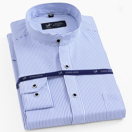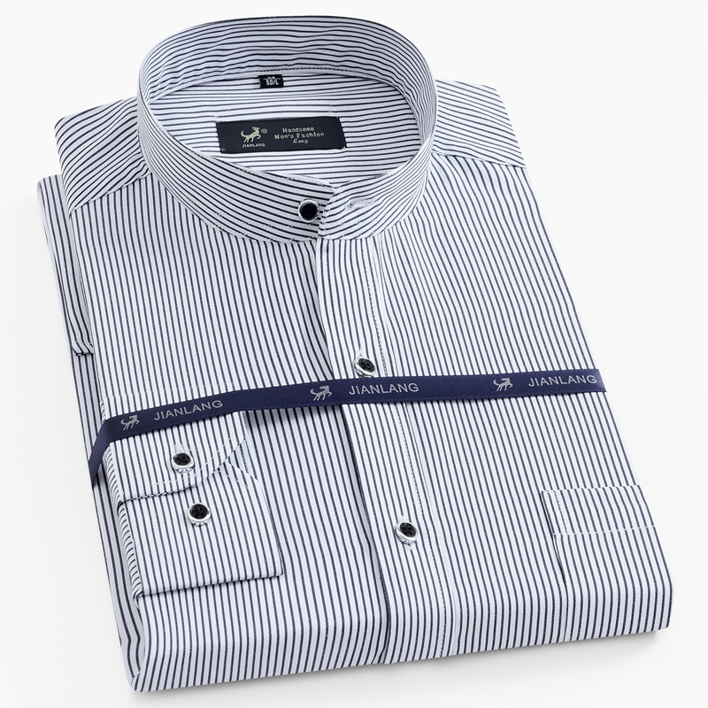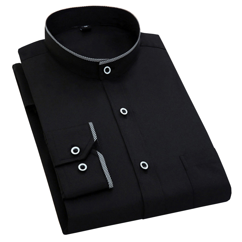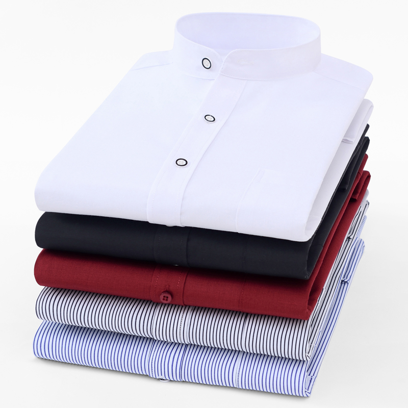 春季爸爸装中华立领衬衫中年男士长袖衫衣中山装圆领衬衣男黑白色