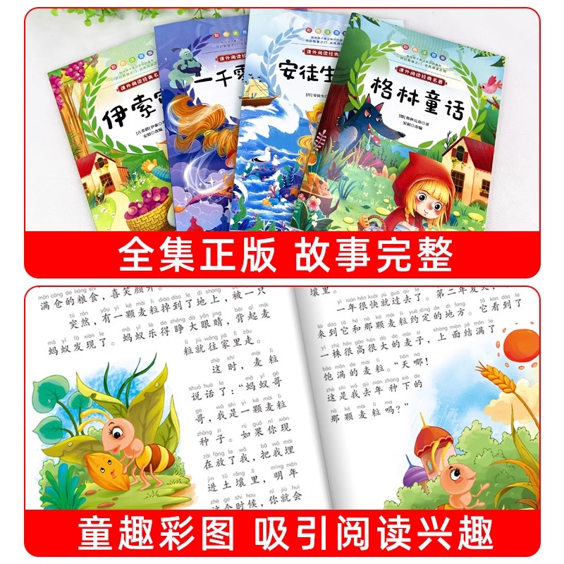 安徒生童话格林童话全集彩图注音版全4册一千零一夜伊索寓言儿童故事书小学生一二年级阅读课外书必读带拼音绘本幼儿读物睡前故事