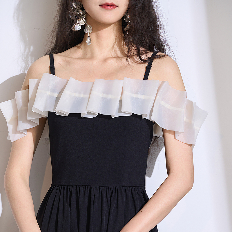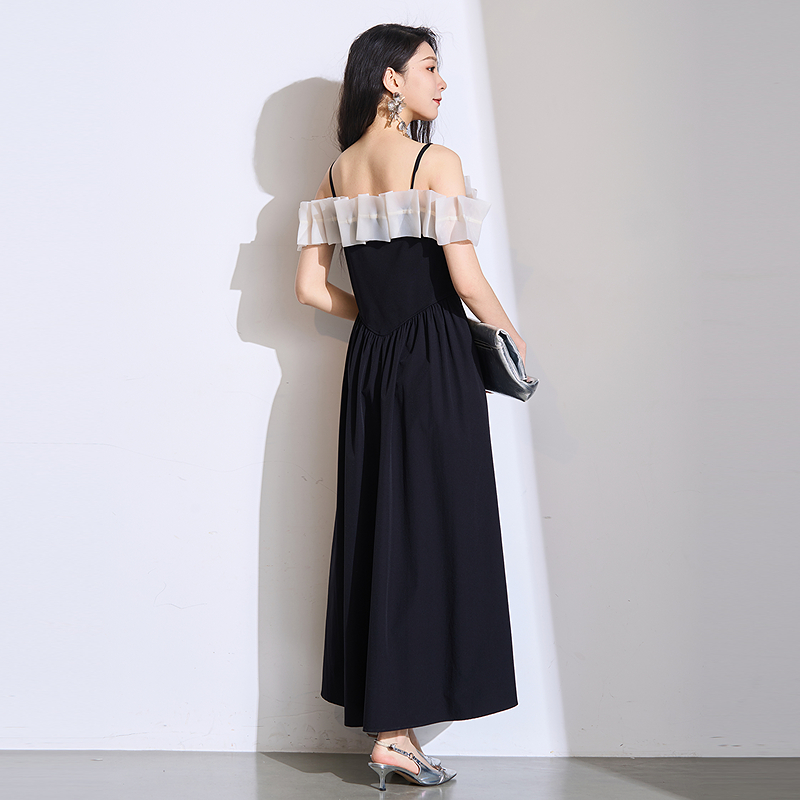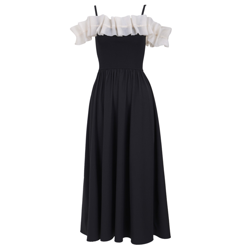 【商场同款】曼诺比菲夏季一字肩吊带连衣裙女收腰长裙