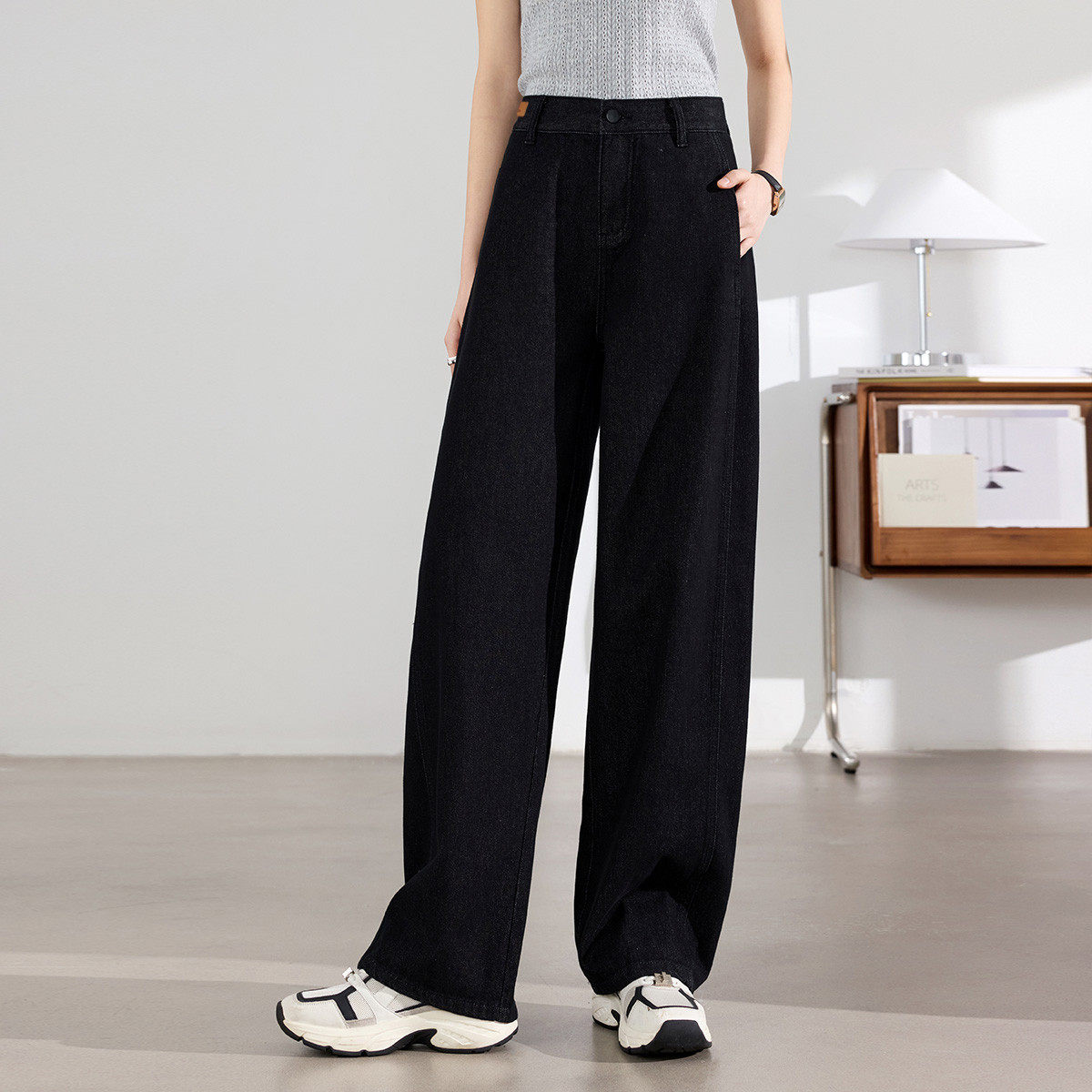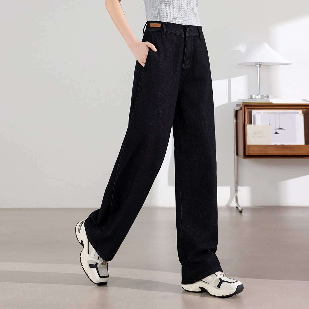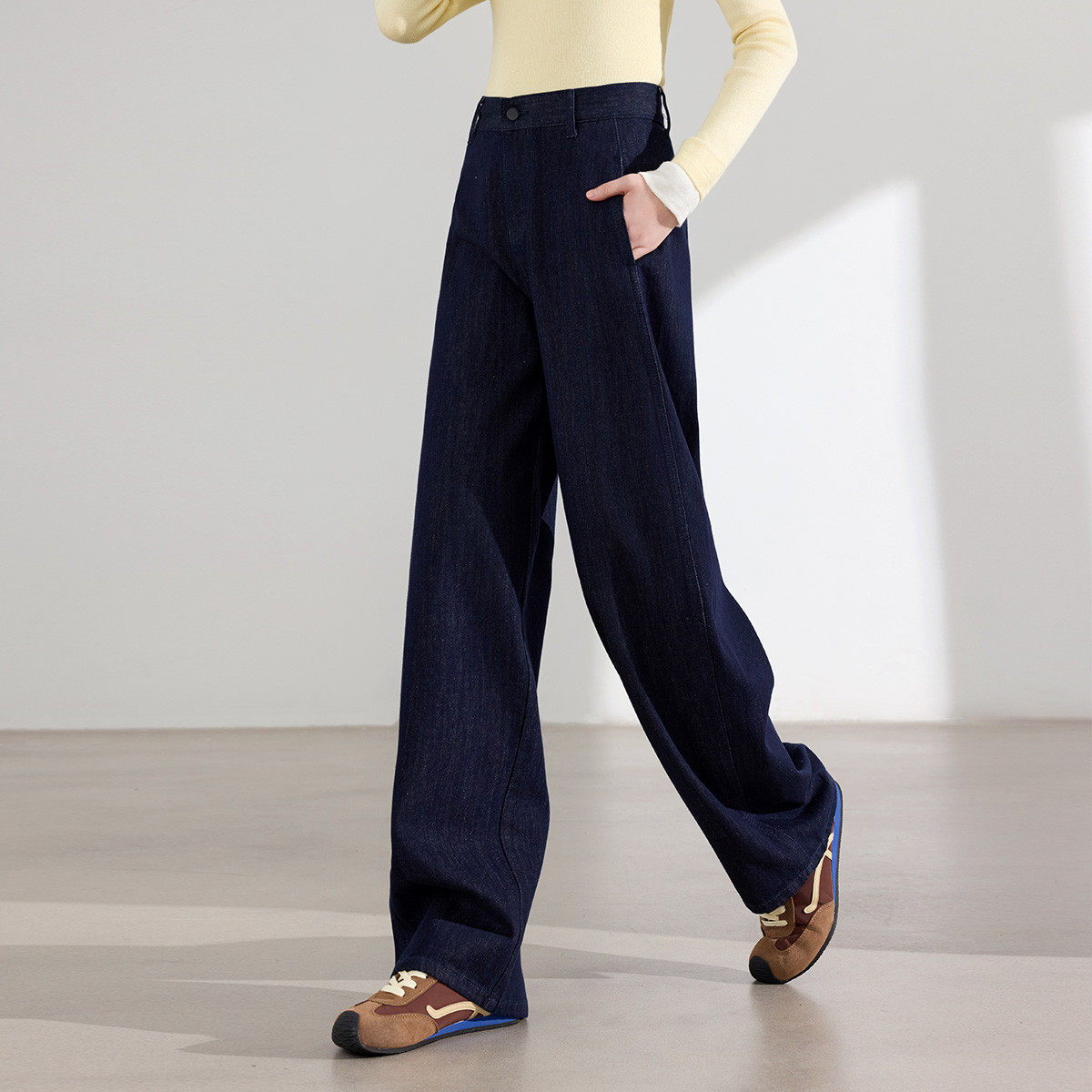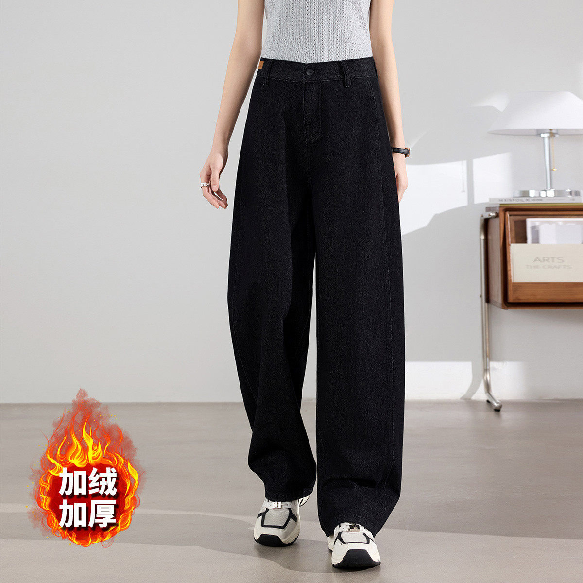 茵曼2025冬季新款美式加绒加厚牛仔裤女直筒高腰显瘦休闲阔腿拖地