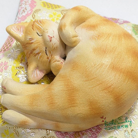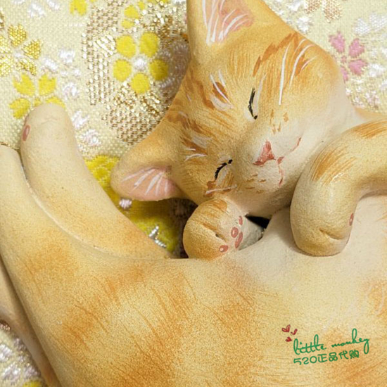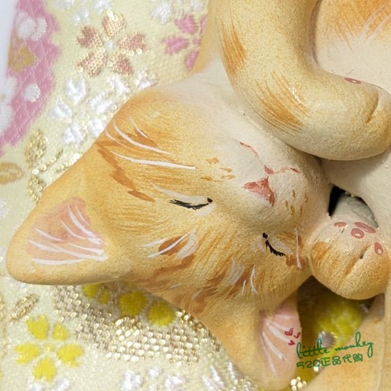 日本代购 茶色猫咪 福猫 睡姿 匠人手工制作治愈陶制公仔特色摆件