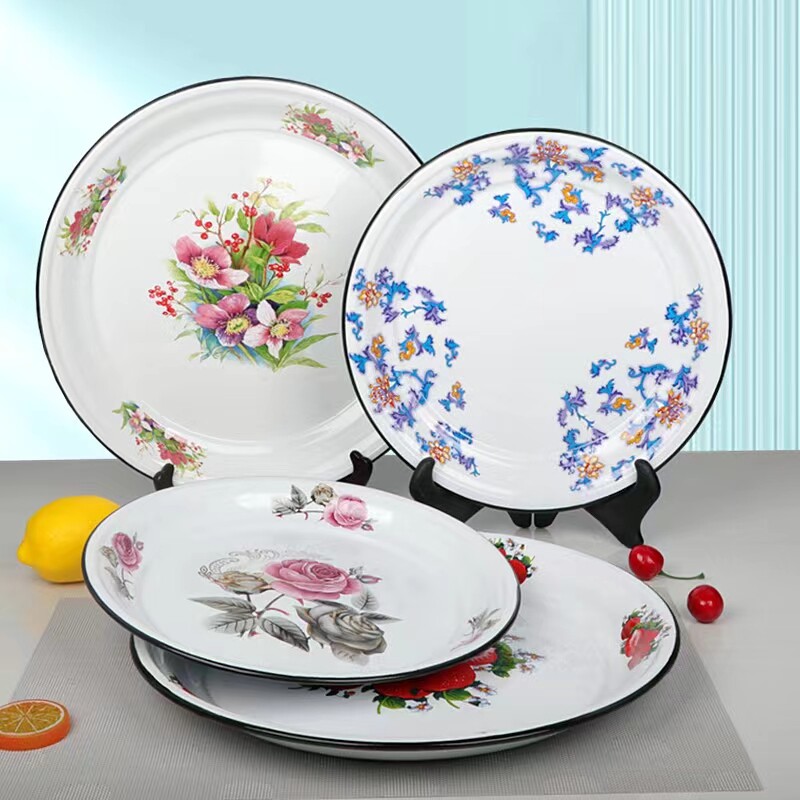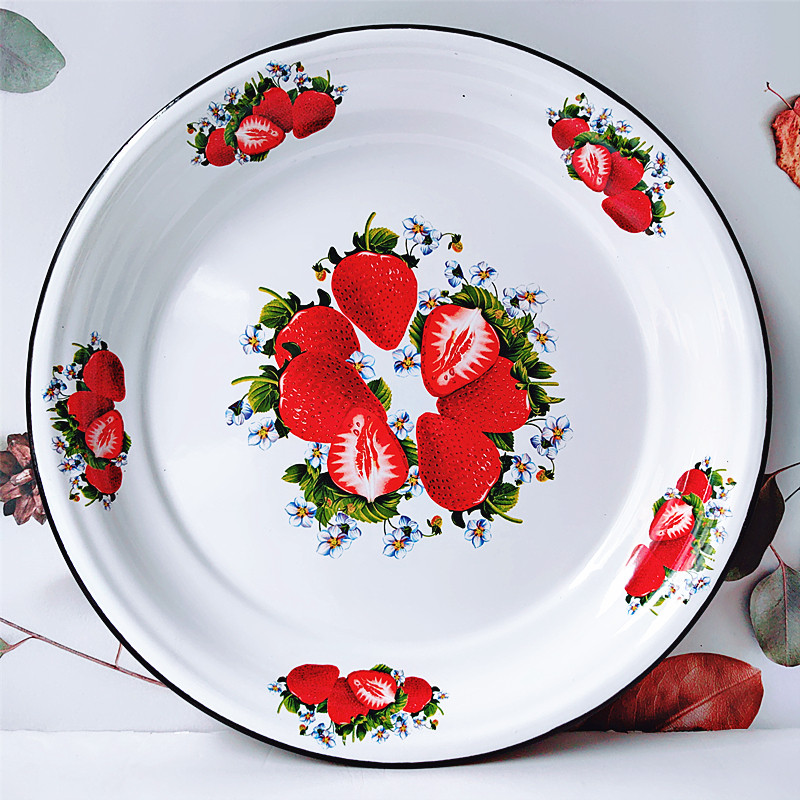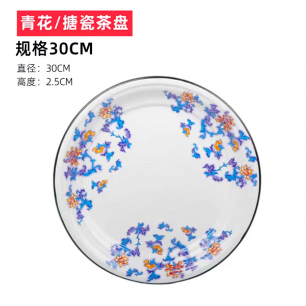 30cm搪瓷茶盘珐琅盘老式加厚水果盘干果盘饺子盘釉下彩耐高温