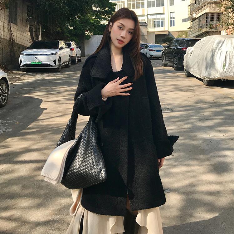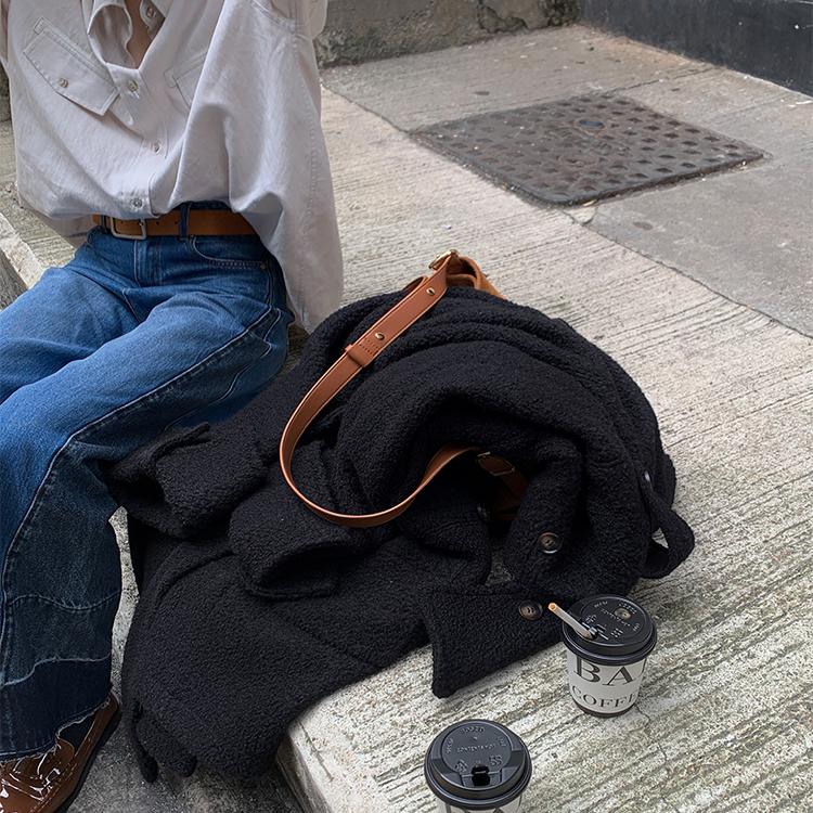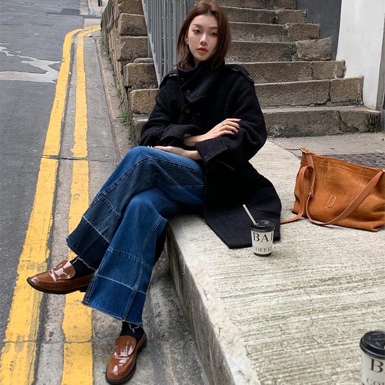 44AaSi 韩剧味道 南北通穿 韩系毛呢外套女中长款秋冬宽松大衣
