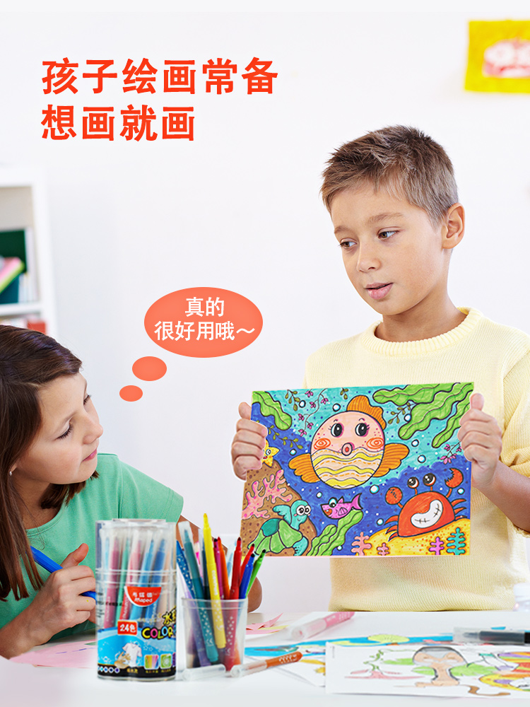 MAPED马培德水彩笔幼儿园宝宝水溶性彩笔涂鸦24色36色儿童手绘画画笔无毒圆头彩笔套装可水洗多色幼儿绘画笔