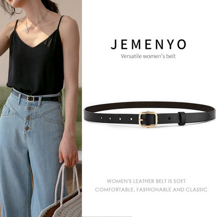 皮带女士真皮时尚百搭装饰牛仔裤带韩国简约潮流ins风黑色细腰带
