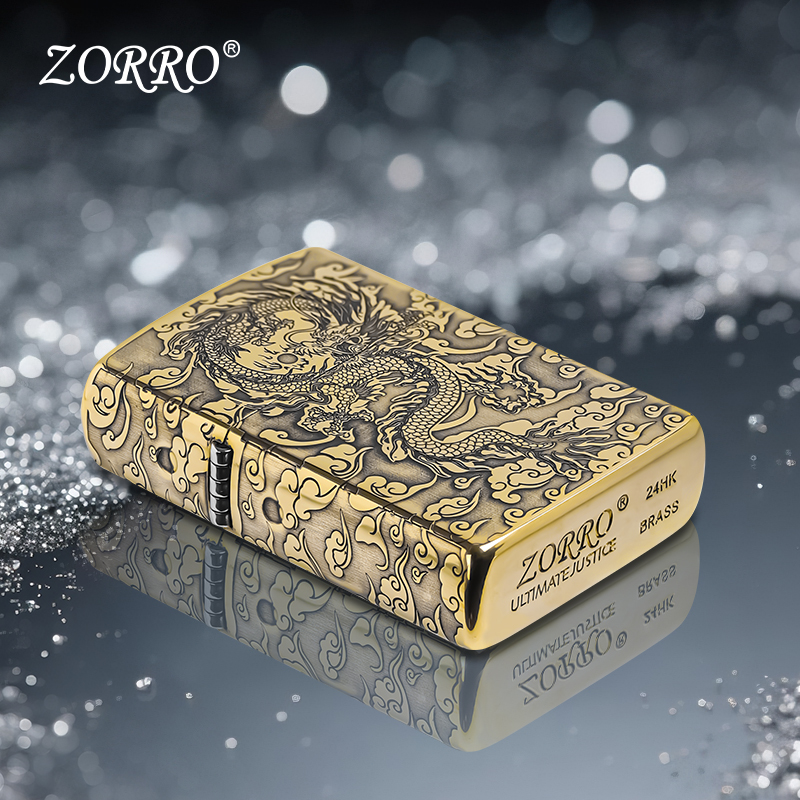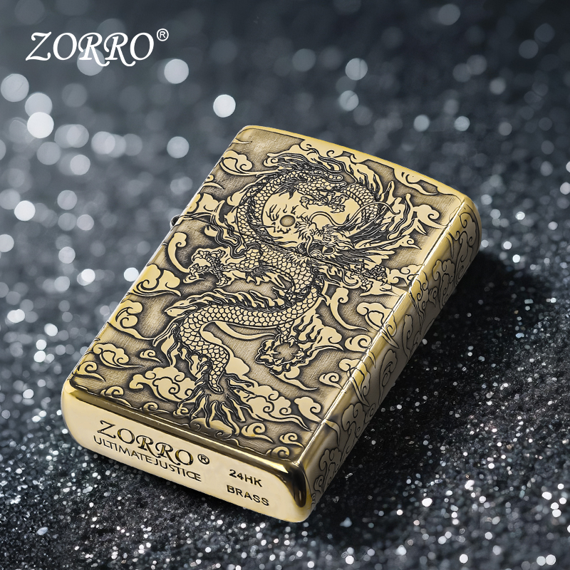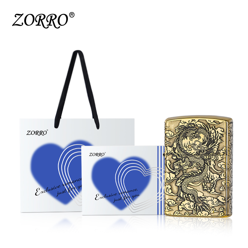 佐罗官方正品煤油打火机防风黄铜定制刻字爸爸生日礼物耐用祥云龙