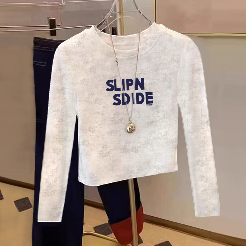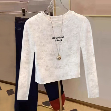 正肩扎染设计感小众短款上衣长袖t恤女2025秋冬新款打底衫内搭