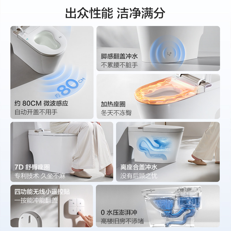 【政府补贴】箭牌官方增压水箱自动翻盖1级水效自动轻智能马桶