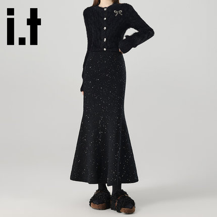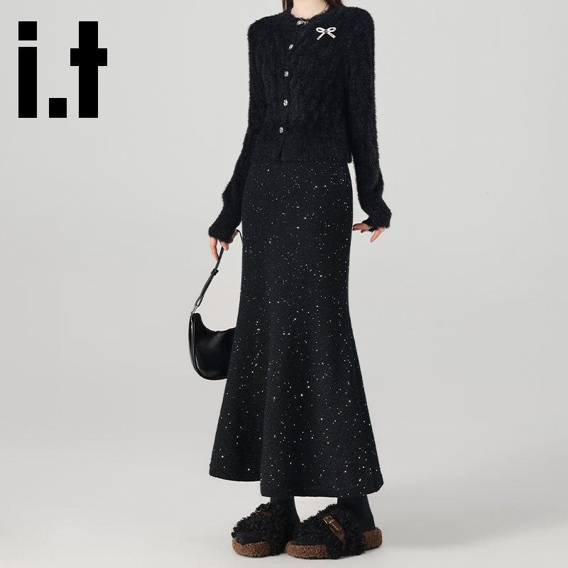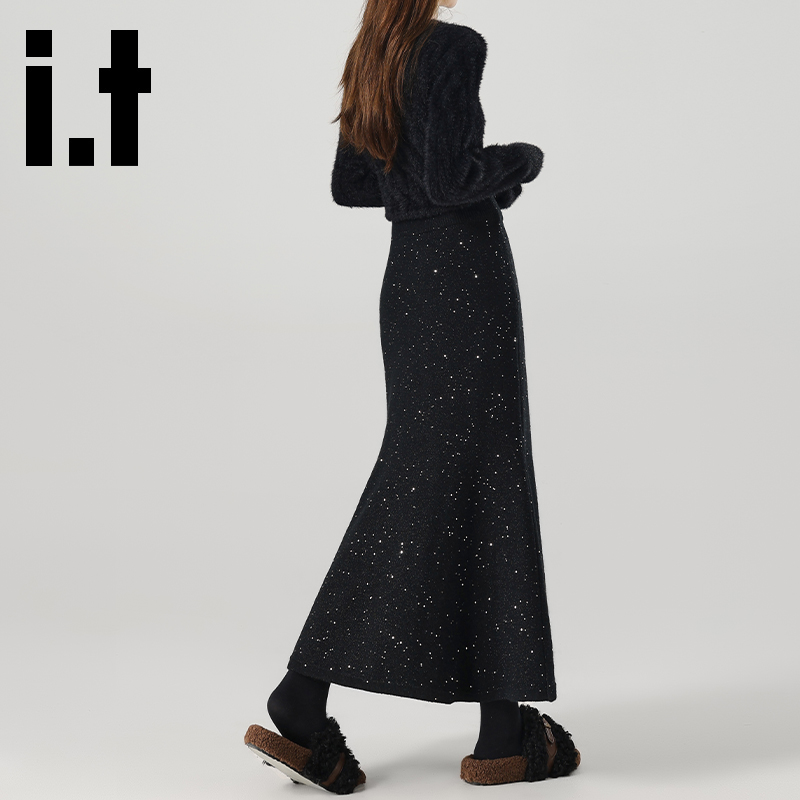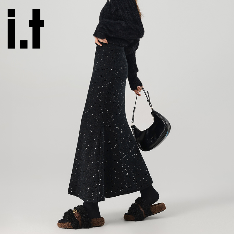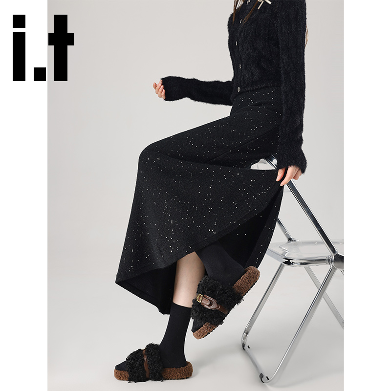 it:CHOCOOLATE高级感加厚烫钻半身裙女秋冬高腰垂感毛呢鱼尾长裙