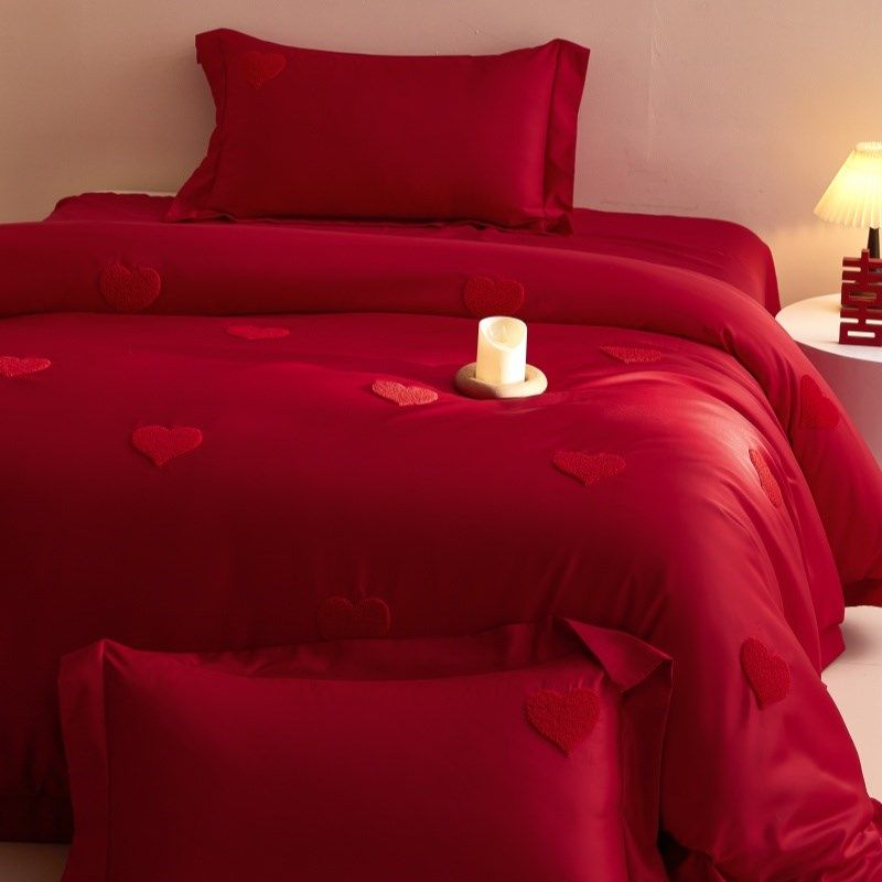 中式爱心结婚四件套大红色床单被套婚庆床上用品婚房喜被