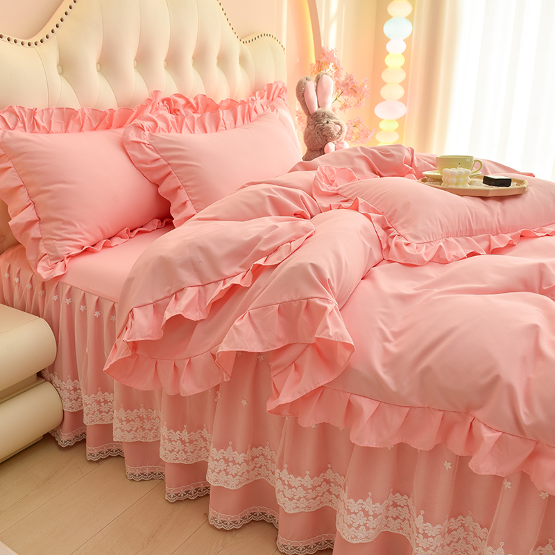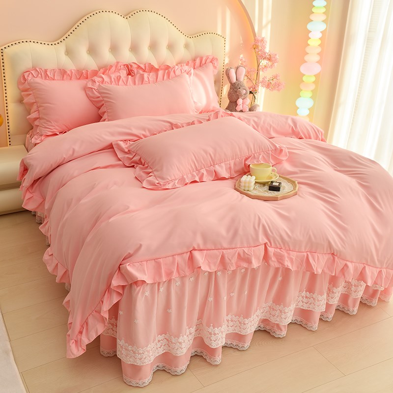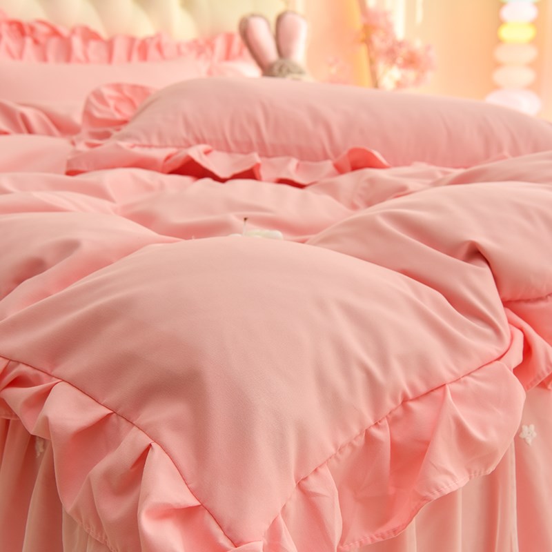 粉色公主风床上四件套全水洗棉床裙款韩式女生网红春秋款夏天床品
