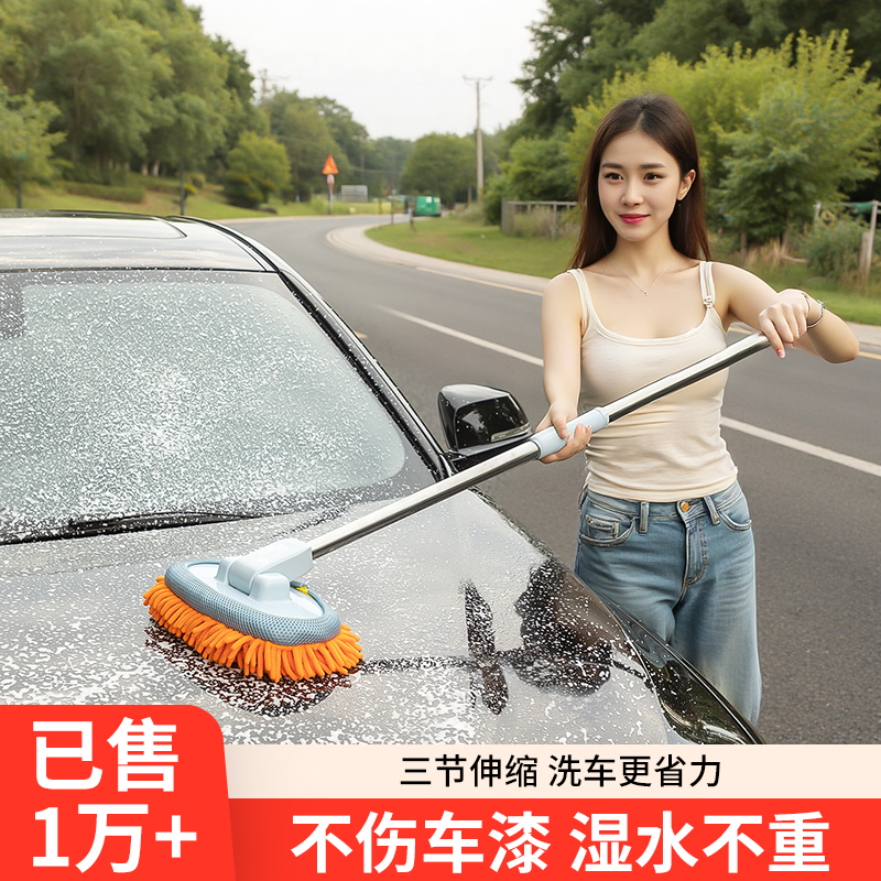 弯杆洗车拖把不伤车漆汽车刷子可伸缩软毛刷车用专用擦车工具神器