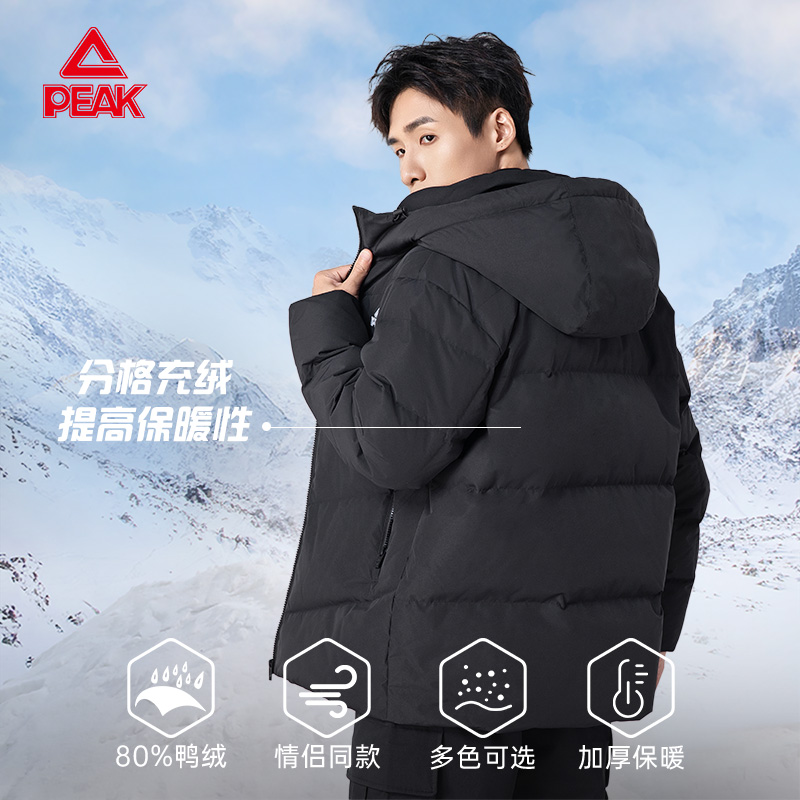 匹克羽绒服男女款2025年冬季新款短款保暖简约运动百搭连帽外套女