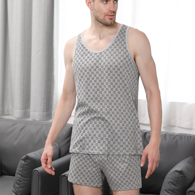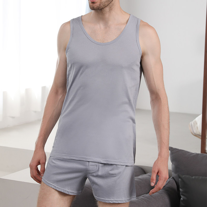 背心男士100%纯棉加大码宽松夏季中老年人打底衫汗衫爸爸全棉套装