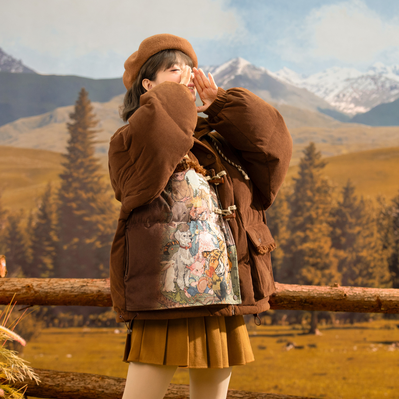 森女部落原创美拉德油画系列复古灯芯绒羽绒服秋冬款外套