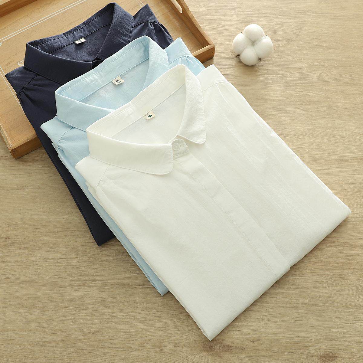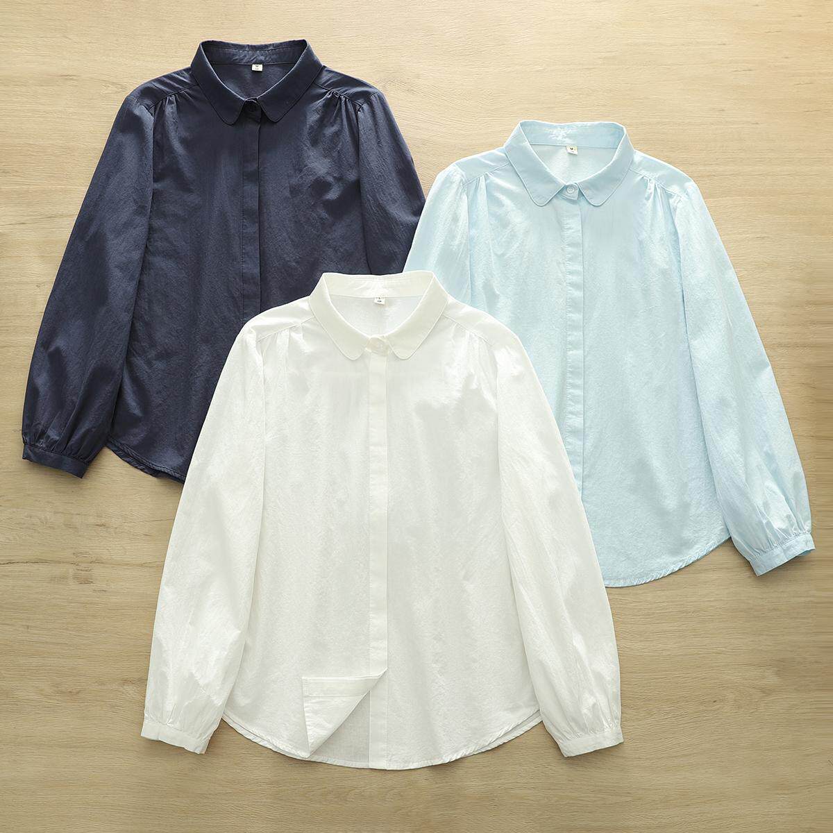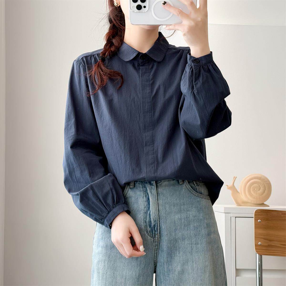 2025纯棉小众设计感圆领白衬衫女翻领百搭休闲长袖打底衬衣X255