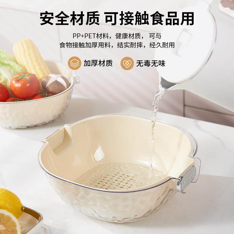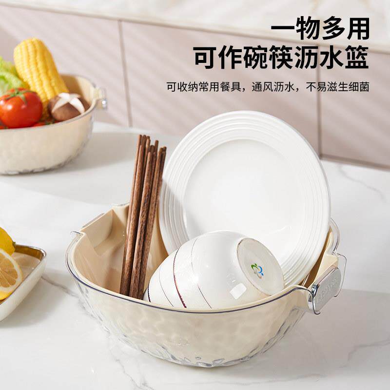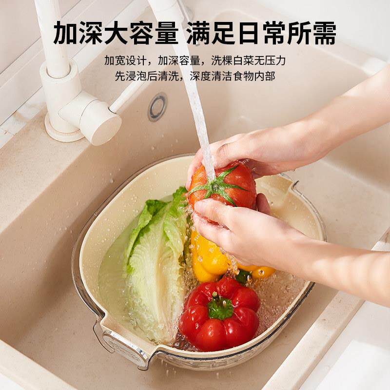 双层洗菜盆沥水篮八件套厨房客厅家用洗水果盘简约塑料淘菜菜篮子