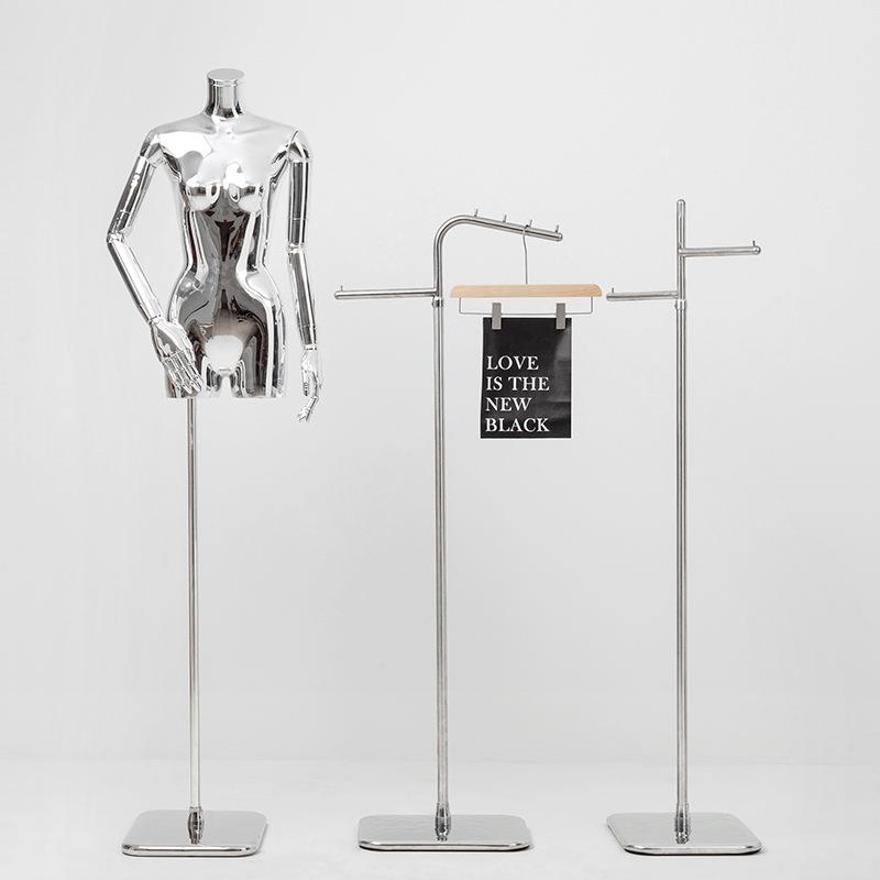服装店中岛展示架不锈钢落地架正挂银色陈列架男女装店货架挂衣架