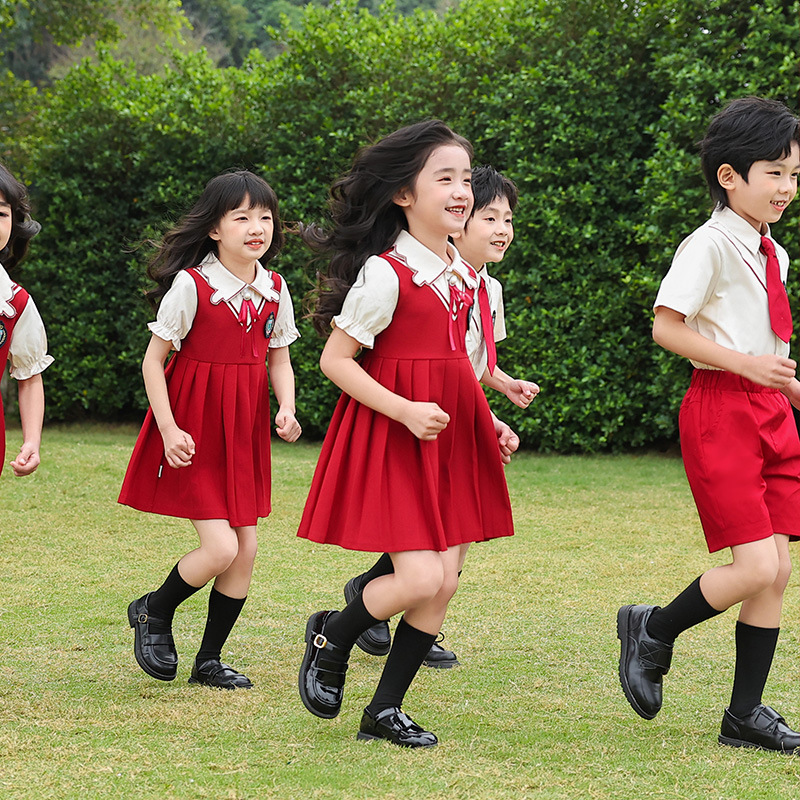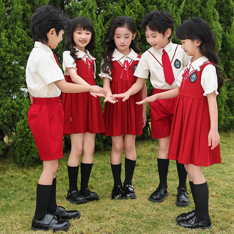 小学生校服套装儿童运动会演出班服英伦校园幼儿园园服夏季红色